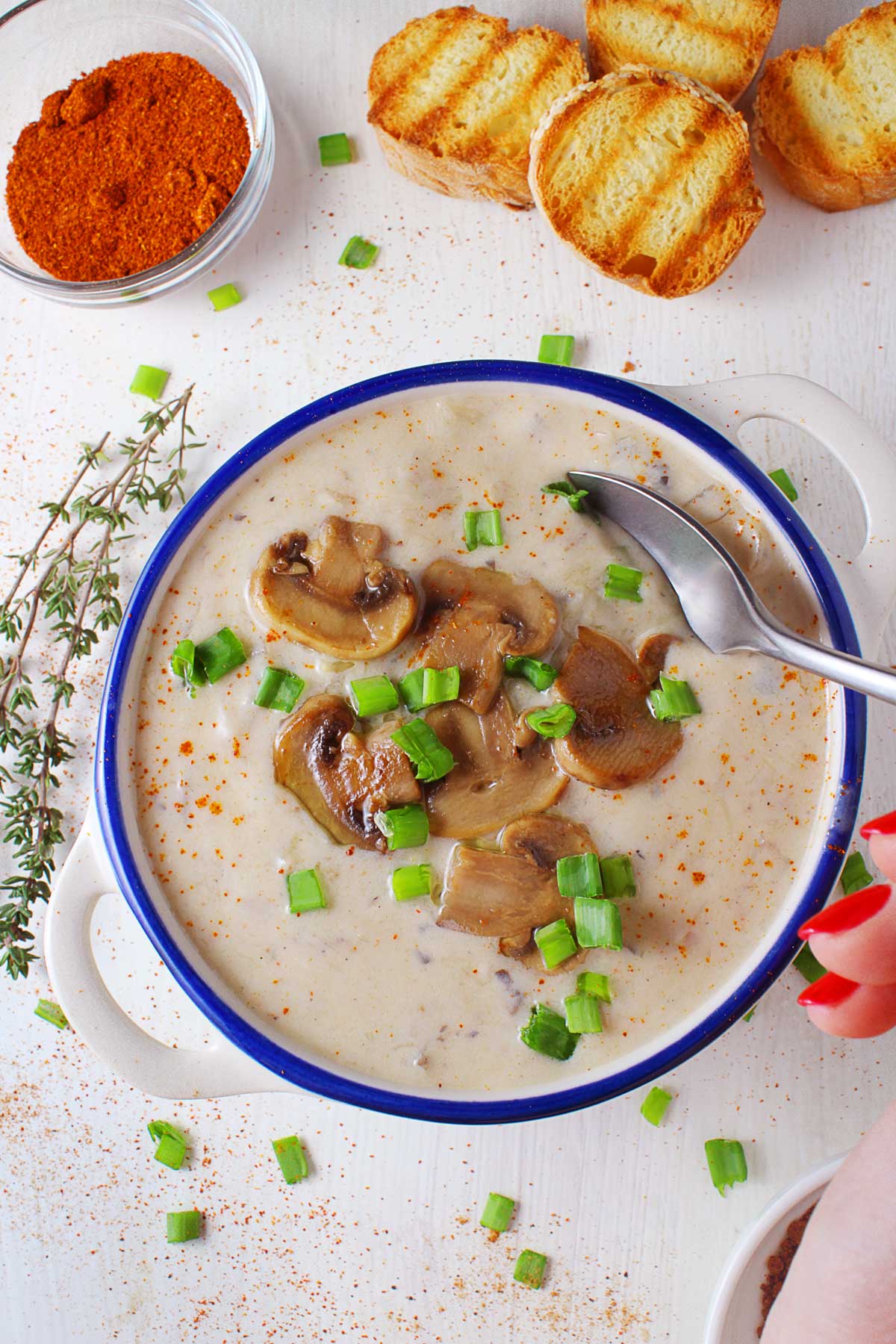 White Wine: Adds brightness and lifts the mushrooms. It keeps the soup from tasting flat.
